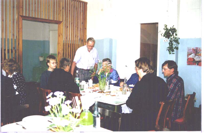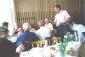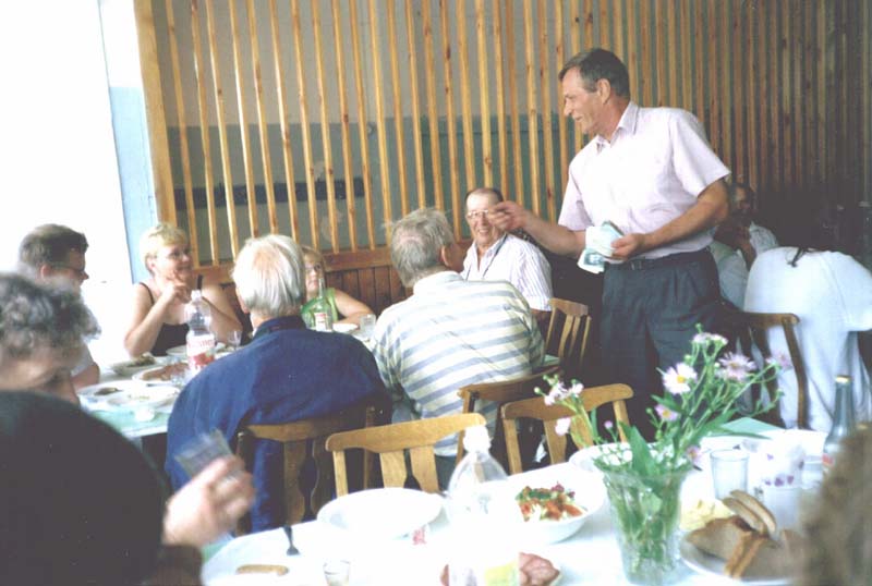 | Erkki Mauranen pitää kiitospuheen murkinan lomassa. |